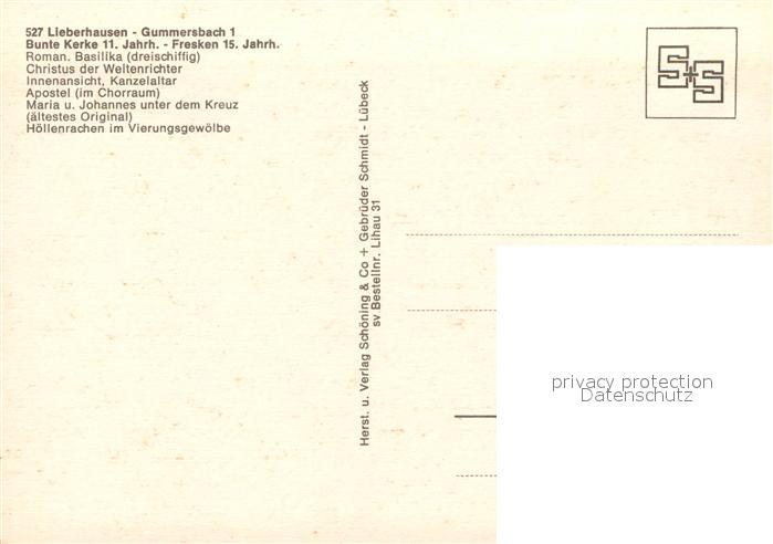 73143809 Lieberhausen Bunte Kerke 11. Jhdt. Fresken 15. Jhdt. Romanische Basilika postalisch nicht gelaufen Erhaltung siehe scans [FriedD77] KatCode: 11110005374012