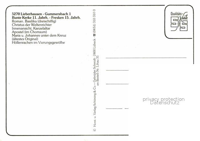 72917775 Lieberhausen Bunte Kerke Fresken postalisch nicht gelaufen Erhaltung siehe scans [LiesaD40] KatCode: 11110005374012