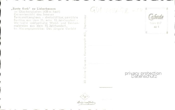 72198687 Lieberhausen Bunte Kork postalisch nicht gelaufen Erhaltung siehe scans KatCode: 11110005374012