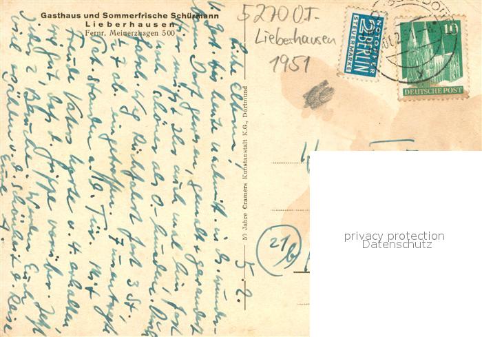 73749560 alte Postkarte Lieberhausen Ortsansicht postalisch gelaufen Erhaltung siehe scans [WerneD78] KatCode: 11110005374012