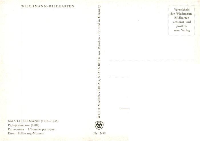 73930912 Liebermann Max Kuenstlerkarte Papageienmann 1902 postalisch nicht gelaufen Erhaltung siehe scans [IrynaD87] KatCode: 22240000003600