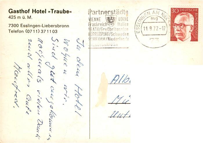 73937917 alte Postkarte Liebersbronn Esslingen Gasthof Traube postalisch gelaufen Erhaltung siehe scans [FriedD77] KatCode: 11110008116019