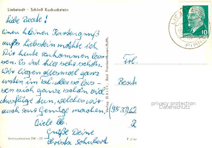 72703400 alte Postkarte Liebstadt Schloss Kuckuckstein postalisch gelaufen Erhaltung siehe scans [FriedD77] KatCode: 11110014287230