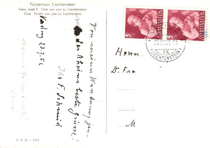 73876822 alte Postkarte Liechtenstein Fuerstentum Franz Josef II Fuerst von und zu Liechtenstein Gina Fuerstin von und zu Liechtenstein Portraits postalisch gelaufen Erhaltung siehe scans [FriedD77] KatCode: 11280060000000