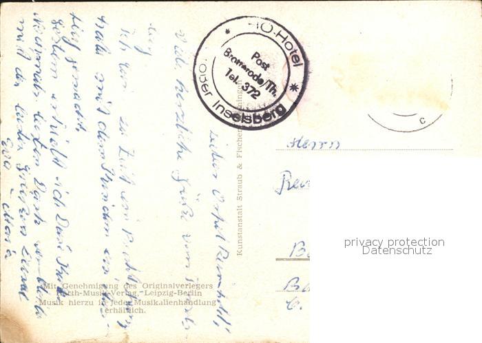 alte Postkarte Liederkarte Inselsberg-Lied Karl Mueller postalisch gelaufen Erhaltung siehe scans