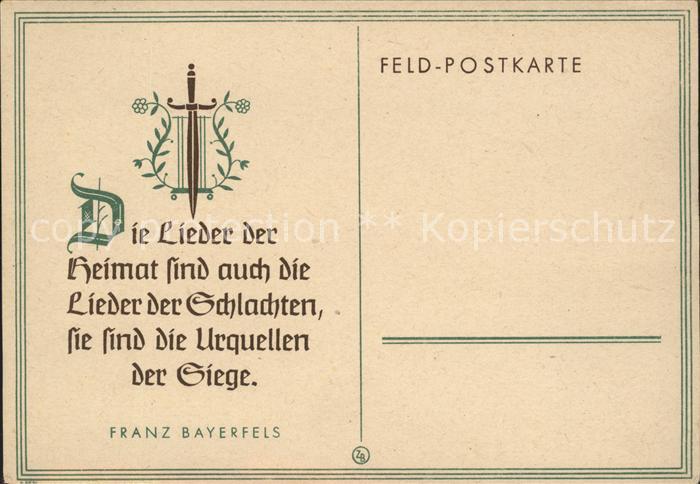Liederkarte Schwert Franz Bayerfels postalisch nicht gelaufen Feldpost Erhaltung siehe scans