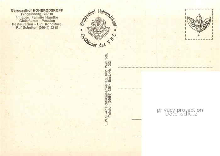 72998450 Liederkarte Vogelsberglied Teufelsmühle Schloss Eisenbach Hoherodskopf KatCode 22560000003300