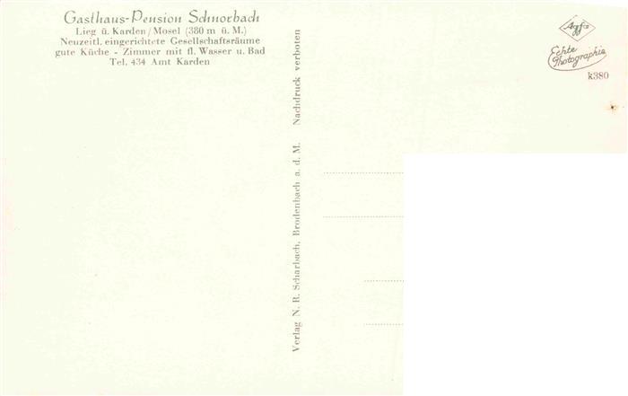74014713 Lieg Gasthaus Schnorbach Karden Burg Eltz Schwimmbad postalisch nicht gelaufen Erhaltung siehe scans [WerneD78] KatCode: 11110007135053