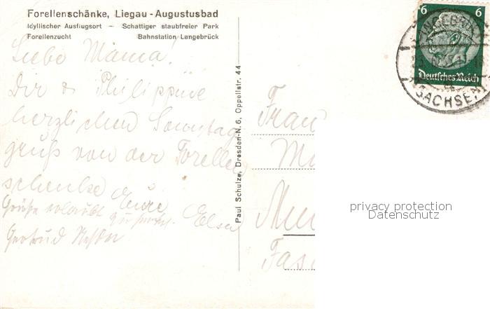 73801711 alte Postkarte Liegau-Augustusbad Radeberg Forellenschaenke postalisch gelaufen Erhaltung siehe scans [FriedD77] KatCode: 11110014292445
