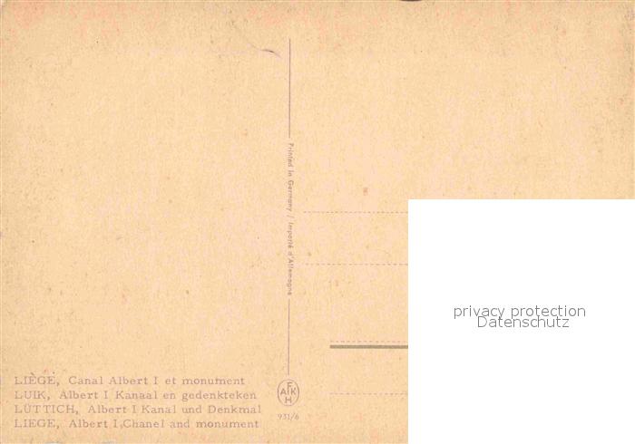 72663270 Liege Luettich Albert I Kanal und Denkmal postalisch nicht gelaufen Erhaltung siehe scans [AndreD76] KatCode: 11070062000376