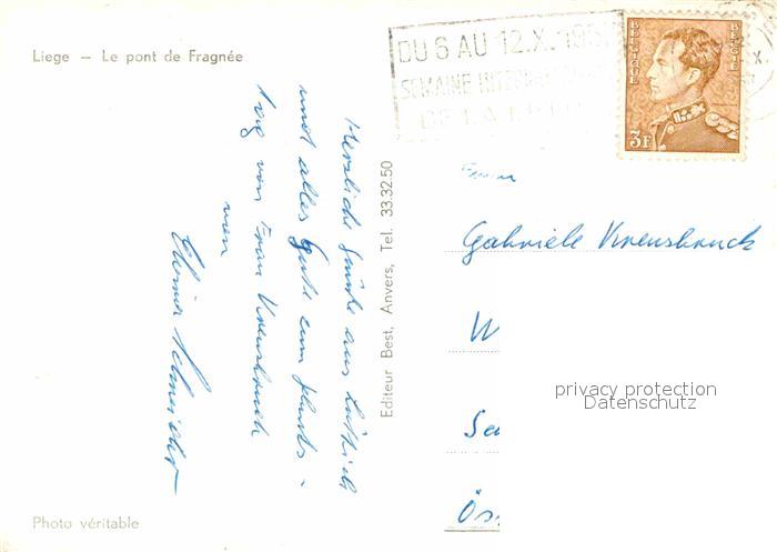 72693127 carte postale Liege Luettich Le Pont de Fragnee postalisch gelaufen Erhaltung siehe scans [LiesaD40] KatCode: 11070062000376