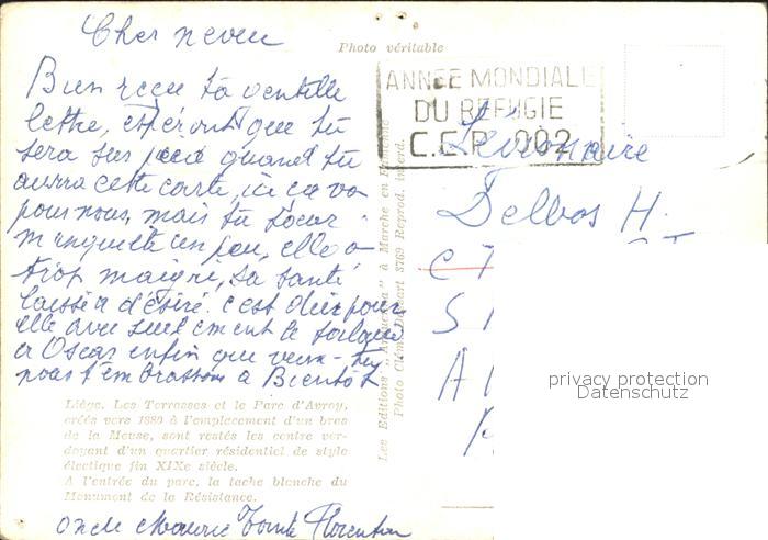 72231283 carte postale Liege Luettich Les Terrasses et le Parc d Avroy postalisch gelaufen Erhaltung siehe scans KatCode: 11070062000376