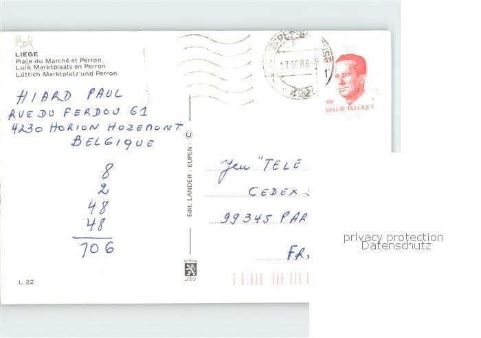 72183182 carte postale Liege Luettich PLace du Marché et Perron postalisch gelaufen Erhaltung siehe scans KatCode: 11070062000376