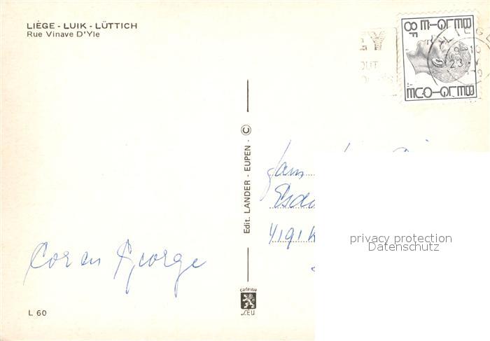 72953421 carte postale Liege Luettich Rue Vinave d Yle postalisch gelaufen Erhaltung siehe scans [FriedD77] KatCode: 11070062000376