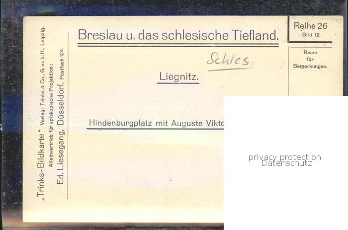 12163774 Liegnitz Legnica Hindenburgplatz mit Auguste Viktoria Schule postalisch nicht gelaufen Erhaltung siehe scans KatCode: 11410