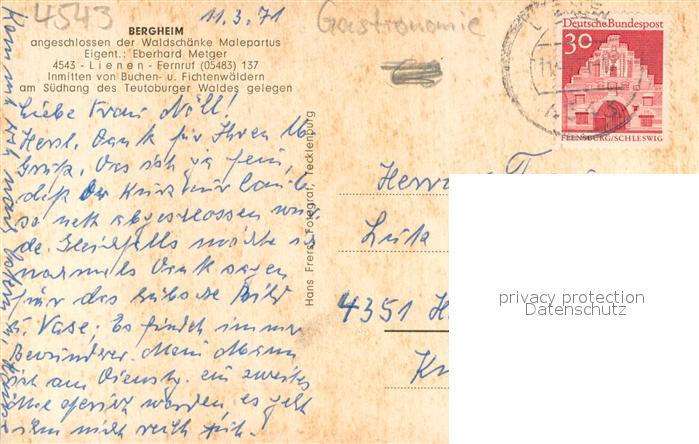 73709791 alte Postkarte Lienen Westfalen Bergheim postalisch gelaufen Erhaltung siehe scans [LiesaD40] KatCode: 11110005566044