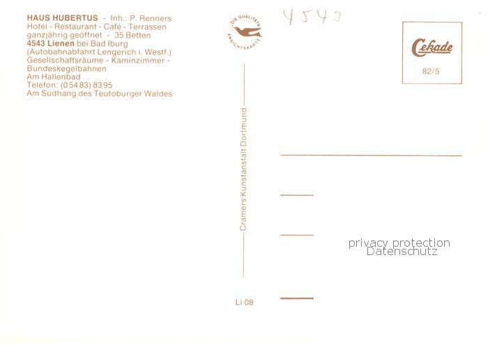 73866504 Lienen Westfalen Haus Hubertus Hotel Restaurant postalisch nicht gelaufen Erhaltung siehe scans [WerneD78] KatCode: 11110005566044