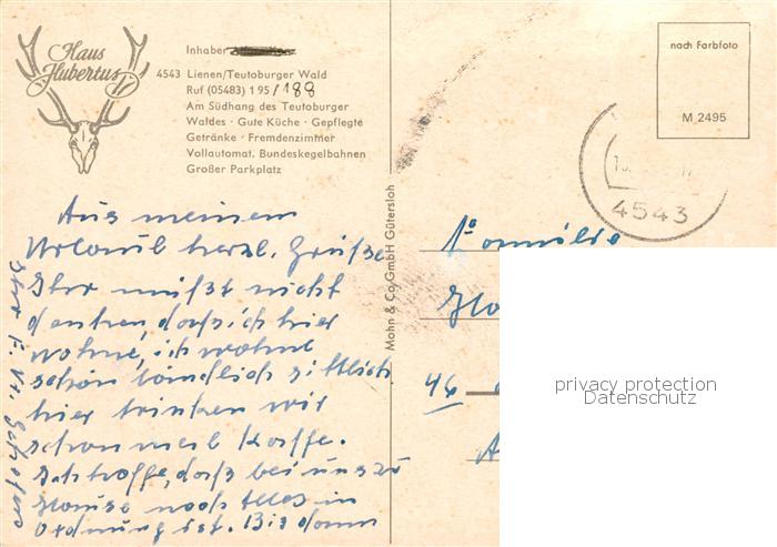 73832666 alte Postkarte Lienen Westfalen haus Hubertus Treppenaufgang Gaststube postalisch gelaufen Erhaltung siehe scans [FriedD77] KatCode: 11110005566044