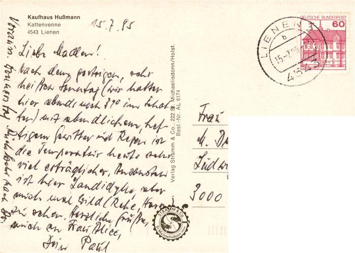 73879742 alte Postkarte Lienen Westfalen Kaufhaus Hussmann Teich Park postalisch gelaufen Erhaltung siehe scans [WerneD78] KatCode: 11110005566044