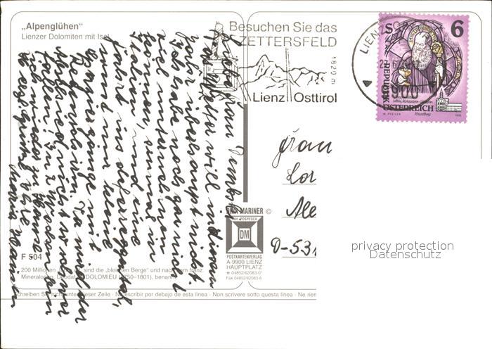 72377664 alte Postkarte Lienz Tirol Alpengluehen postalisch gelaufen Erhaltung siehe scans KatCode: 11390333070716