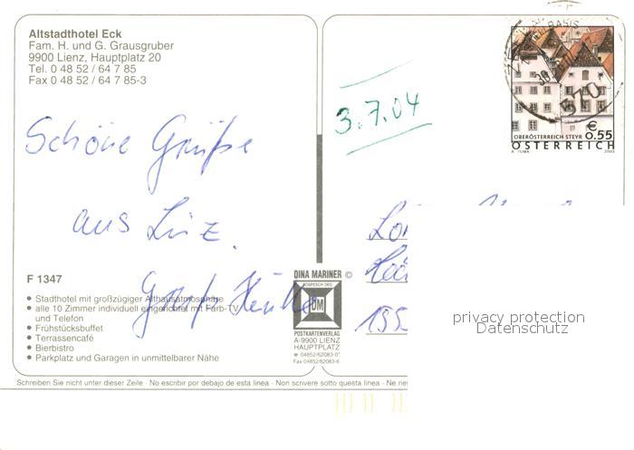 73521474 alte Postkarte Lienz Tirol Altstadthotel Eck Hauptplatz Gastgarten postalisch gelaufen Erhaltung siehe scans [WerneD78] KatCode: 11390333070716