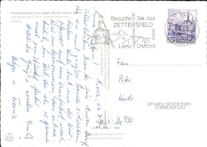72399435 alte Postkarte Lienz Tirol Dolomiten Weittalspitze Spiezkofel postalisch gelaufen Erhaltung siehe scans KatCode: 11390333070716