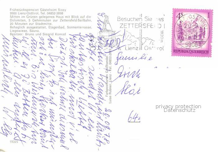 12637473 alte Postkarte Lienz Tirol Gaestehaus Sissy postalisch gelaufen Erhaltung siehe scans [LiesaD40] KatCode: 11390333070716