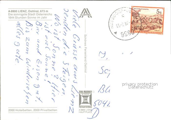 72438127 alte Postkarte Lienz Tirol Gesamtansicht Stadtplatz postalisch gelaufen Erhaltung siehe scans KatCode: 11390333070716