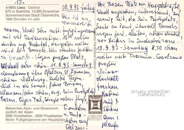72904627 Lienz Tirol Hauptplatz mit Liebburg Rathaus von 1606 postalisch nicht gelaufen Erhaltung siehe scans [FriedD77] KatCode: 11390333070716