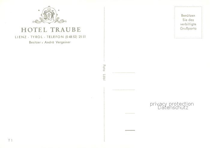 73522225 Lienz Tirol Hotel Traube postalisch nicht gelaufen Erhaltung siehe scans [WerneD78] KatCode: 11390333070716