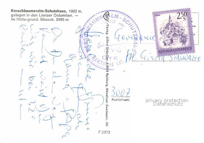 72851891 alte Postkarte Lienz Tirol Kerschbaumeralm Schutzhaus postalisch gelaufen Erhaltung siehe scans [AndreD76] KatCode: 11390333070716