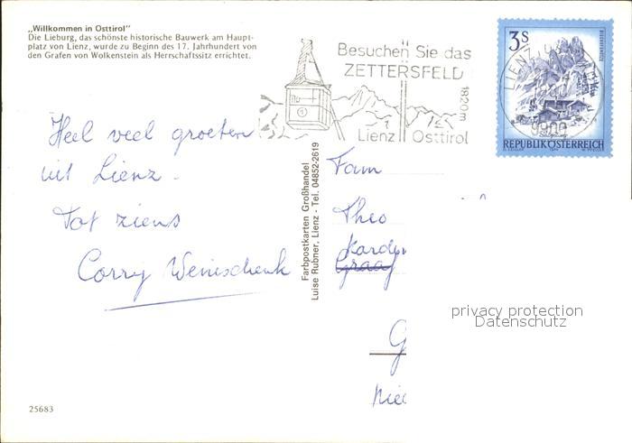 72094906 alte Postkarte Lienz Tirol Lieburg am Hauptplatz postalisch gelaufen Erhaltung siehe scans KatCode: 11390333070716