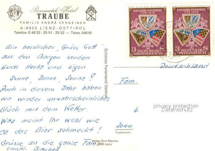 73573517 alte Postkarte Lienz Tirol Romantik Hotel Traube postalisch gelaufen Erhaltung siehe scans [FriedD77] KatCode: 11390333070716