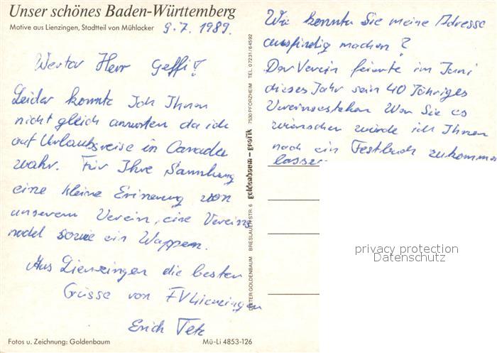 73648442 Lienzingen Ortsmotive Kirchen Stadtteil Muehlacker postalisch nicht gelaufen Erhaltung siehe scans [WerneD78] KatCode: 11110008236040