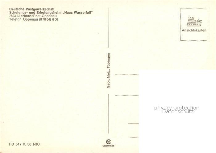 73636218 Lierbach Deutsche Postgewerkschaft Schulungs- und Erholungsheim Haus Wasserfall Rezeption Schwarzwald postalisch nicht gelaufen Erhaltung siehe scans [FriedD77] KatCode: 11110008317098
