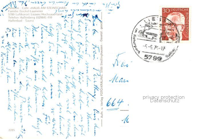 73835574 alte Postkarte Liesen Haus am Steinschab Gastraeume Bar postalisch gelaufen Erhaltung siehe scans [WerneD78] KatCode: 11110005958020