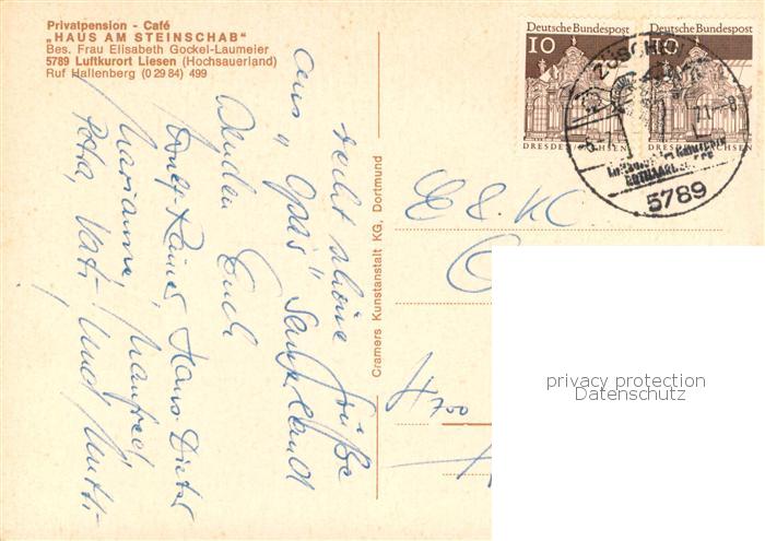 73780132 alte Postkarte Liesen Pension Cafe Haus am Steinschab postalisch gelaufen Erhaltung siehe scans [FriedD77] KatCode: 11110005958020