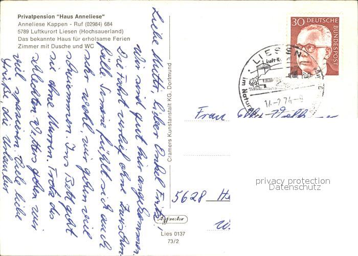 72174396 alte Postkarte Liesen Privatpension Haus Anneliese postalisch gelaufen Erhaltung siehe scans KatCode: 11110005958020