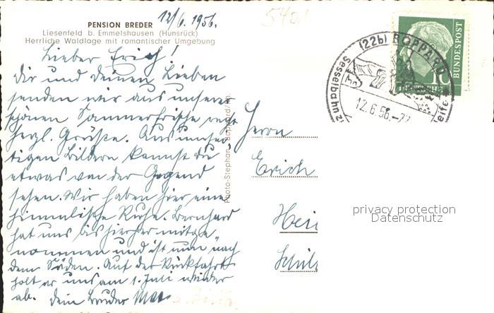 31884934 alte Postkarte Liesenfeld Hunsrueck Pension Breder Hubertusbruecke Ehrbachklamm postalisch gelaufen Erhaltung siehe scans KatCode: 11110007140036