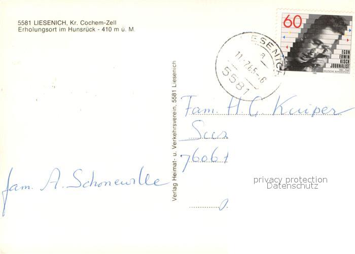 73671871 alte Postkarte Liesenich Alte Dorfkirche Panorama Taeler Landschaft Moselberg postalisch gelaufen Erhaltung siehe scans [WerneD78] KatCode: 11110007135054