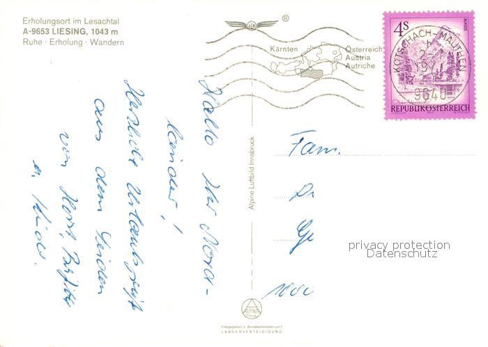 73587092 alte Postkarte Liesing Kaernten Fliegeraufnahme postalisch gelaufen Erhaltung siehe scans [WerneD78] KatCode: 11390212020321