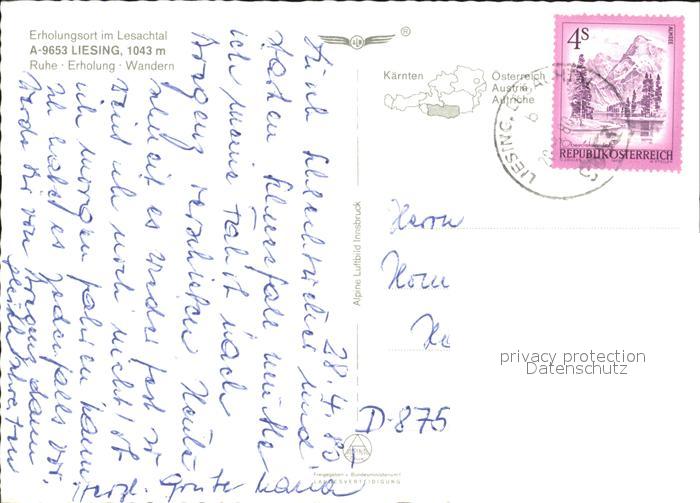 72257721 alte Postkarte Liesing Wien Lesachtal Alpenpanorama Fliegeraufnahme postalisch gelaufen Erhaltung siehe scans KatCode: 11390130090001