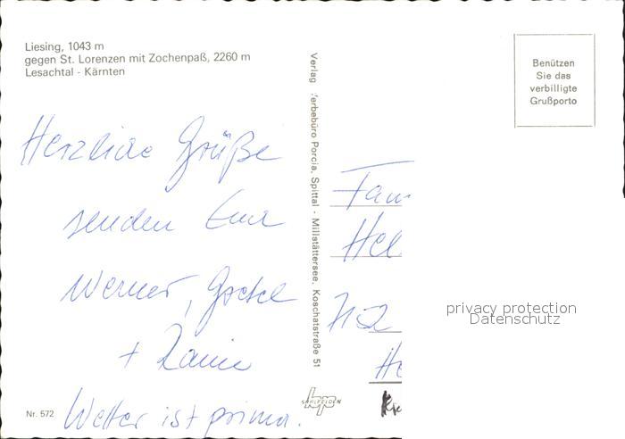 72455519 Liesing Wien Panorama Blick gegen St Lorenzen mit Zochenpass Lesachtal postalisch nicht gelaufen Erhaltung siehe scans KatCode: 11390130090001