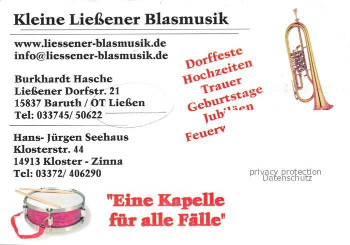 74092145 Liessen Baruth Mark Brandenburg Kleine Liessener Blasmusik Blaskapelle postalisch nicht gelaufen Werbekarte (keine Postkarte) Erhaltung siehe scans [WerneD78] KatCode: 11110012072014