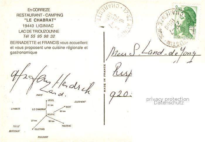 13060191 Liginiac Restaurant Camping Le Chabrat Lac de Triouzounne KatCode 11170019319113