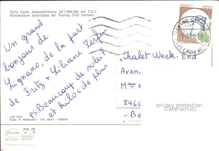 old postcard Lignano Autokarte Hotel Strand postalisch gelaufen Erhaltung siehe scans
