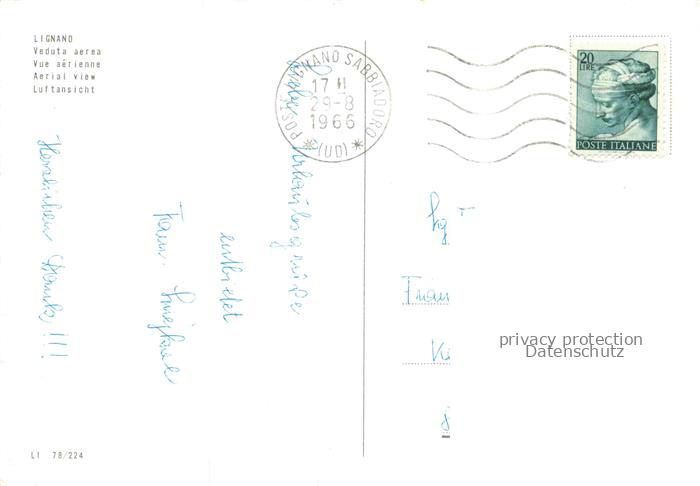 74156120 old postcard LIGNANO City Veneto IT Veduta aerea postalisch gelaufen Fliegeraufnahme Erhaltung siehe scans [FriedD77] KatCode: 11240