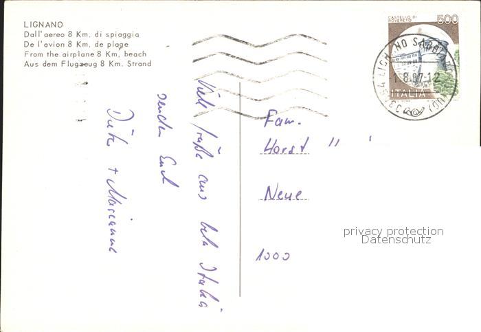 old postcard Lignano Fliegeraufnahme postalisch gelaufen Erhaltung siehe scans