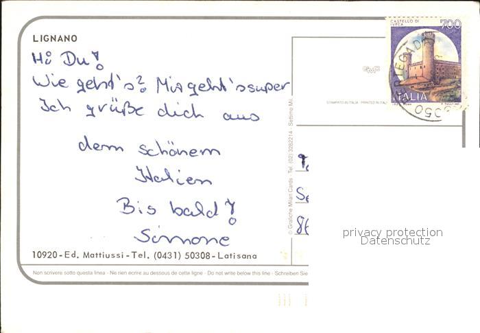 old postcard Lignano Fliegeraufnahme Strand postalisch gelaufen Erhaltung siehe scans