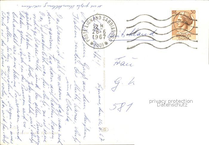 old postcard Lignano Fliegeraufnahme Strand Brunnen postalisch gelaufen Erhaltung siehe scans